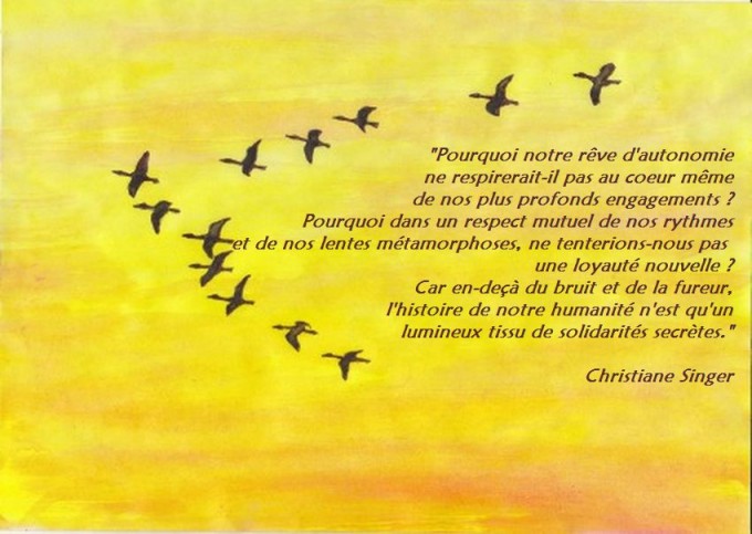 Puissions-nous tisser les uns avec les autres, les uns grâce aux autres, ce « lumineux tissu de solidarités secrètes » où chacun peut oser être librement lui-même…